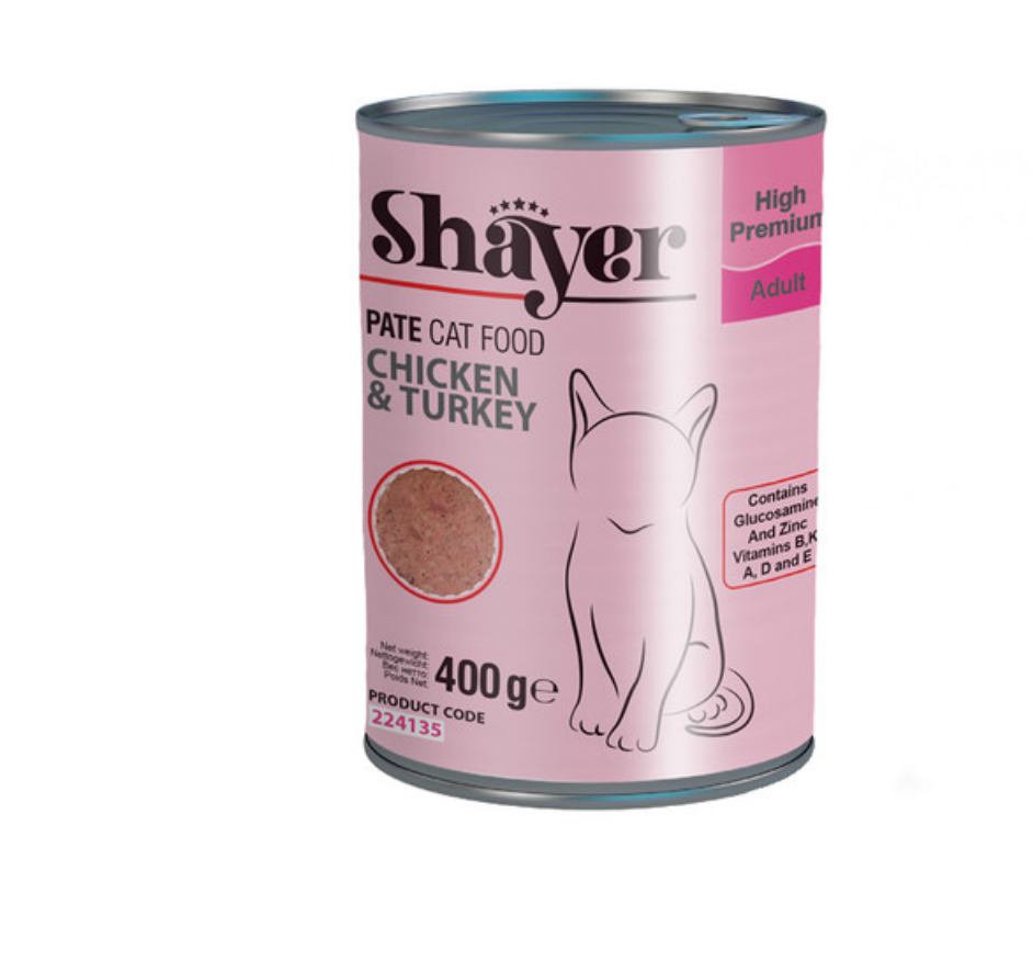 کنسرو گربه پته ای شایر مرغ و بوقلمون 400 گرم