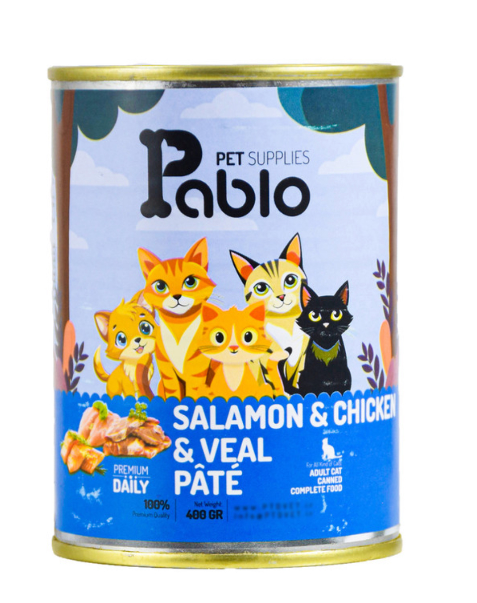 کنسرو گربه بالغ پابلو پته طعم مرغ و گوشت گاو وزن 800 گرم Pablo