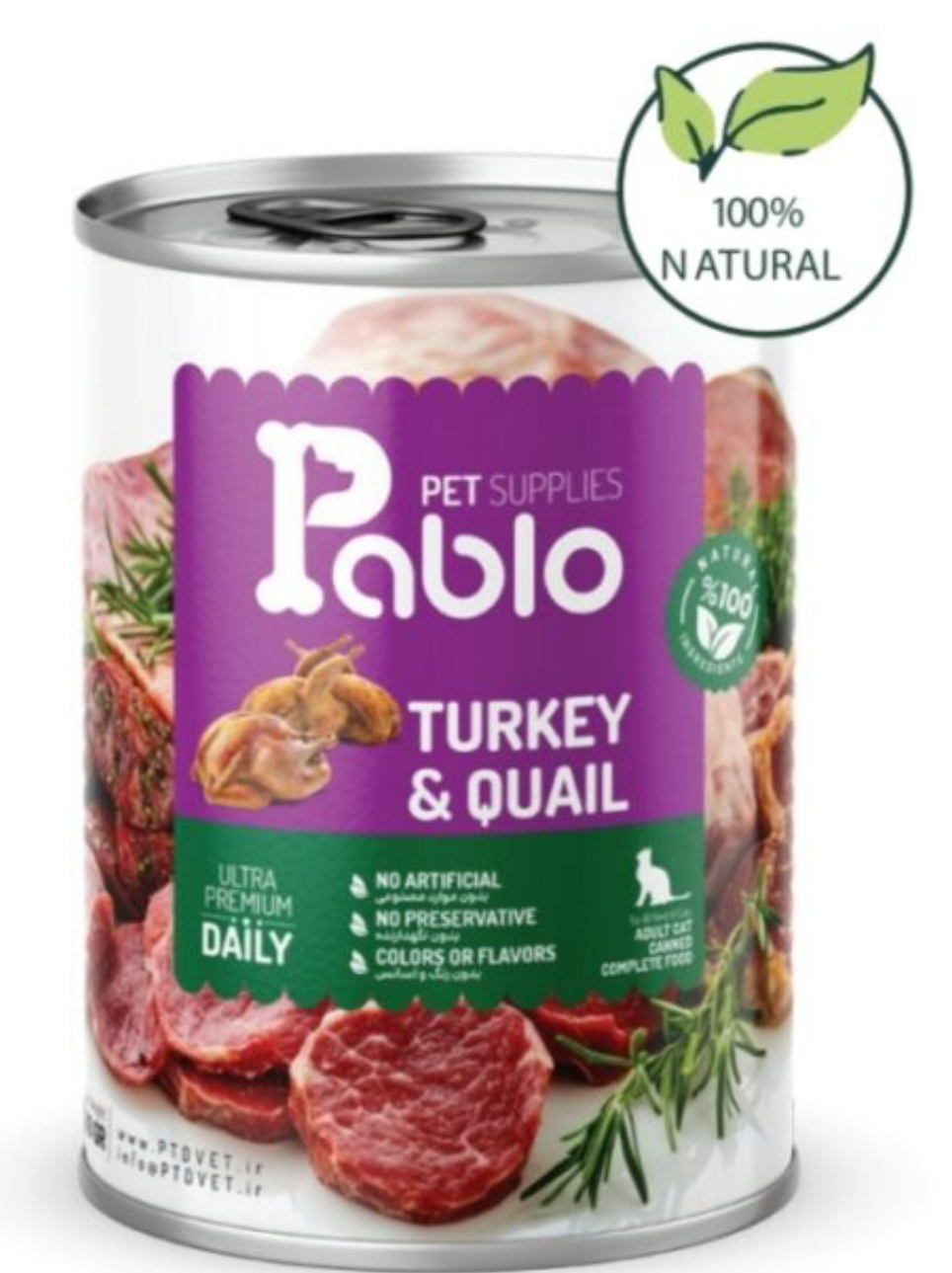 کنسرو نچرال گربه بالغ پابلو (بوقلمون و بلدرچین) 400 گرمی