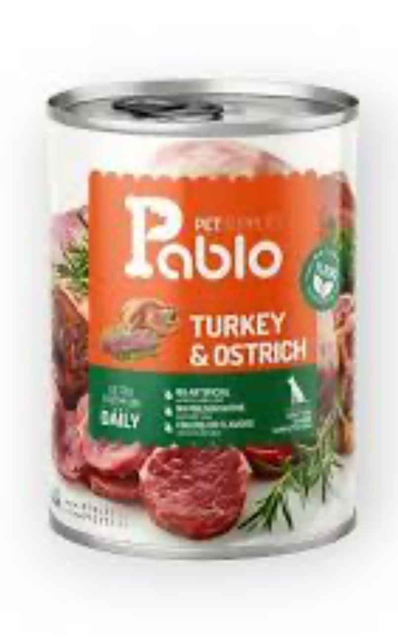 کنسرو نچرال سگ پابلو طعم گوشت شترمرغ و بوقلمون ۴۰۰ گرم