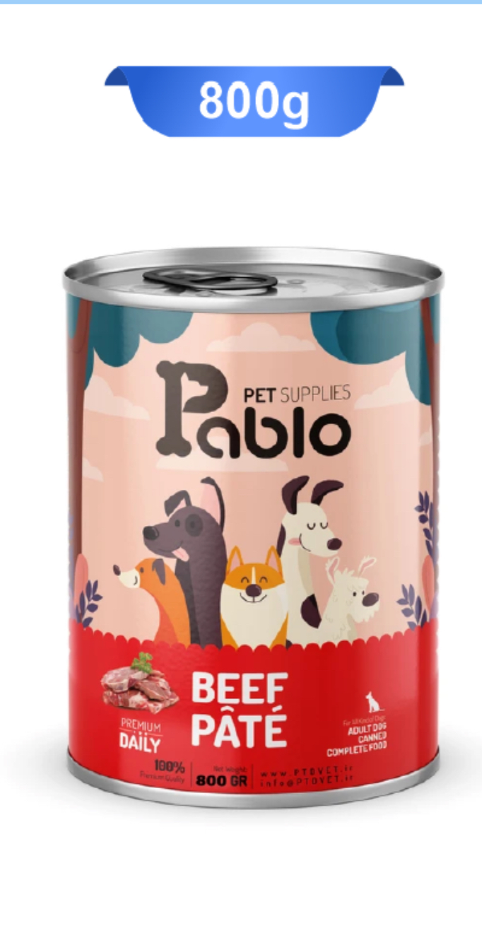 کنسرو پته سگ بالغ پابلو طعم گوشت خالص وزن 800 گرم Pablo Dog