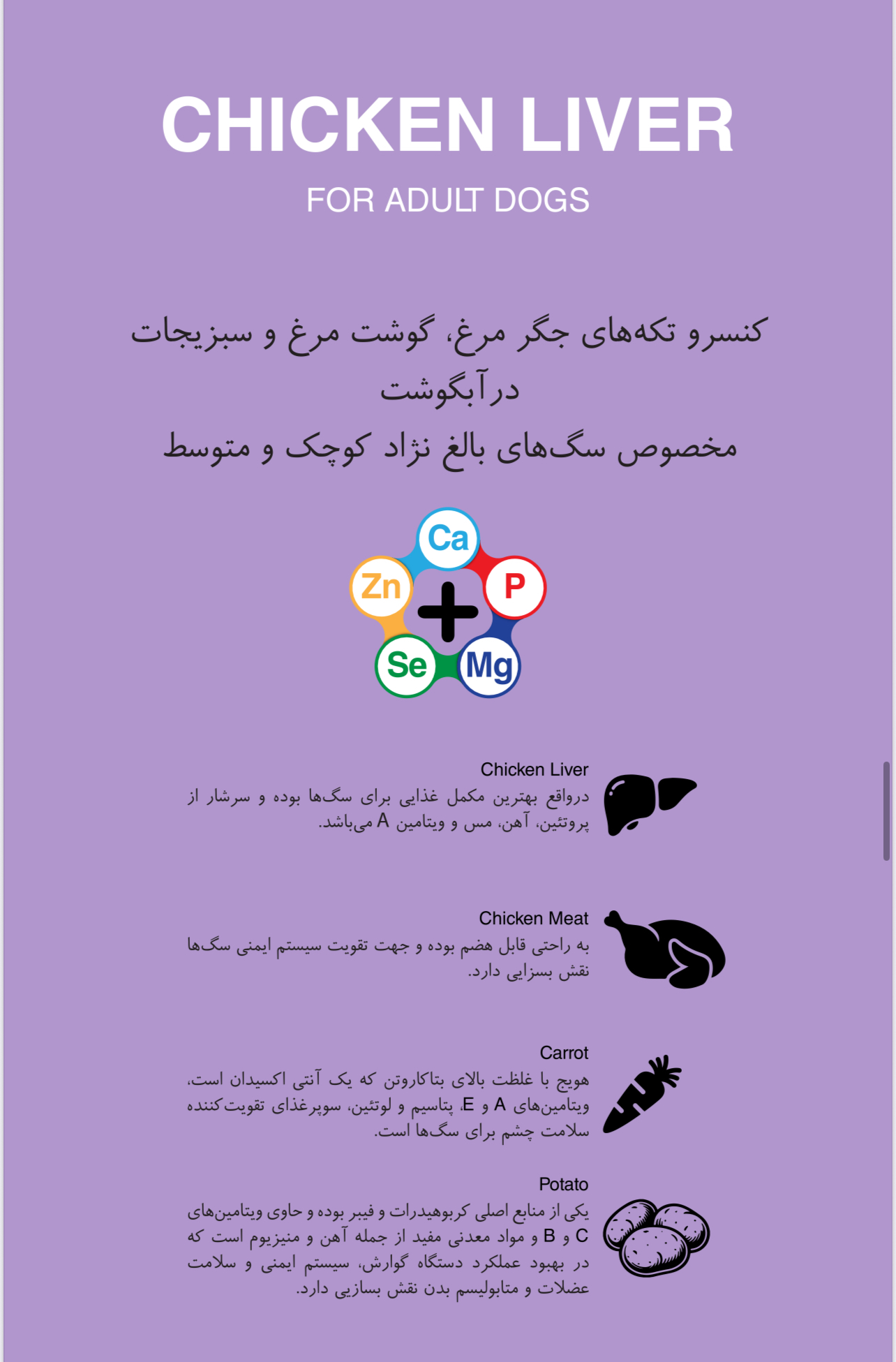 تکه های جگرمرغ و‌سبزیجات در آبگوشت مناسب سگ های بالغ