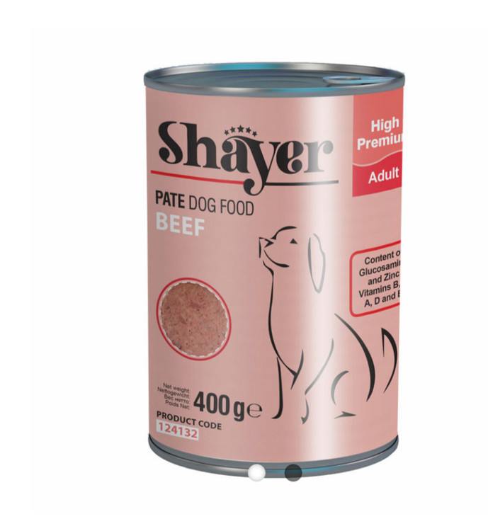کنسرو غذای سگ با طعم گوشت قرمز شایر Shayer Pate With Beef وزن 400 گرم