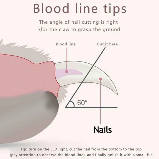 - مراقب باشید که به رگ های خونی که در داخل ناخن حیوان شما قرار دارد (به نام “سریر ناخن”) برخورد نکنید، زیرا این کار می تواند باعث درد و خونریزی شود.