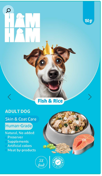 غذای سگ هام هام مدل ماهی و برنج ۱۵۰ گرمی